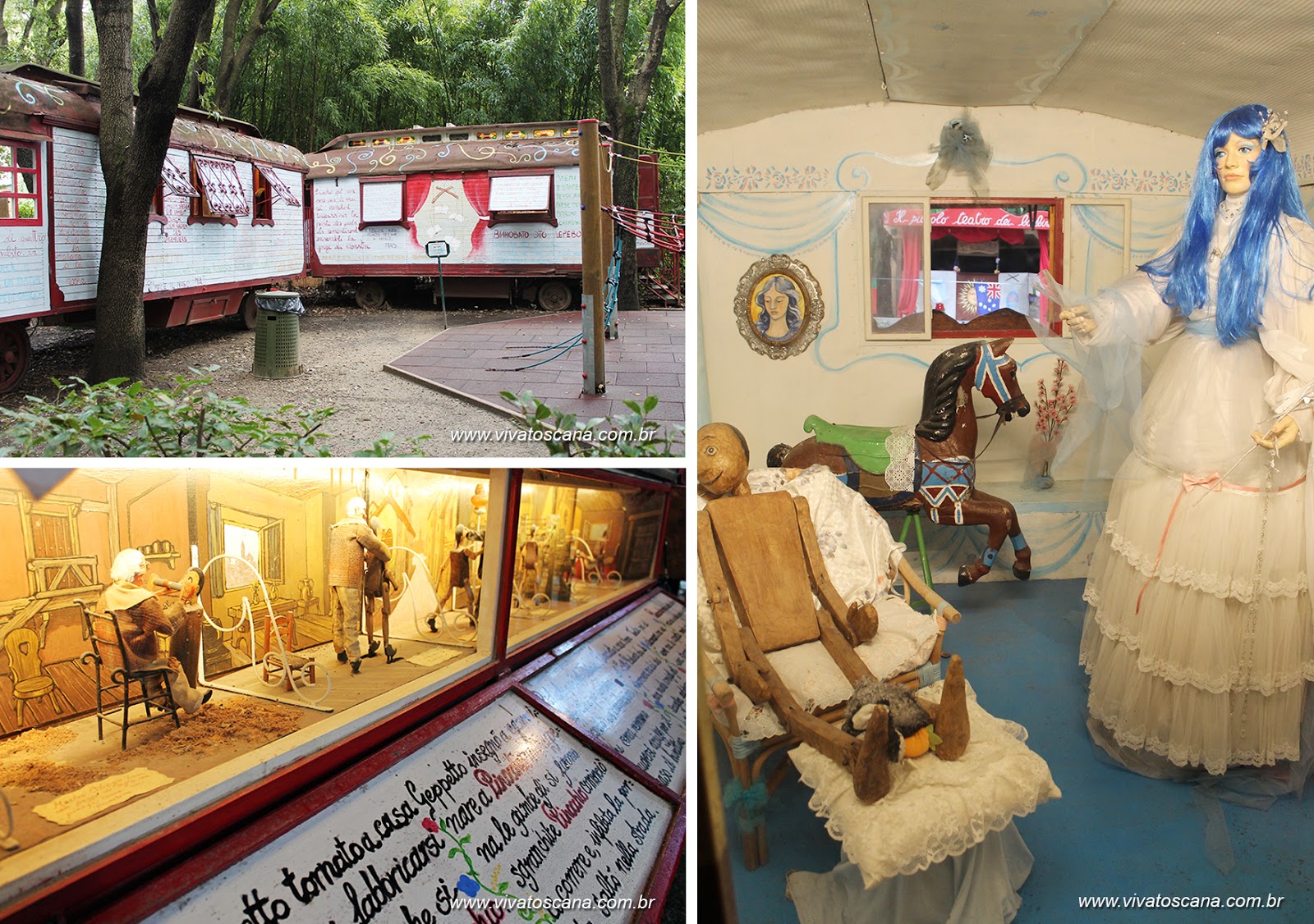 O que me “espantou” e me fez pensar logo de início que a visita era uma “furada”, foram os brinquedos (tipo carrossel), os traillers com a exposição de marionetes e teatrinho mecânico que eram muito velhos. Ver o teatrinho mecânico empoeirado e o sistema nheco-nheco que precisava urgentemente de um óleo foi um pouco depressivo… Mas passado este primeiro susto, o resto do percurso foi show!