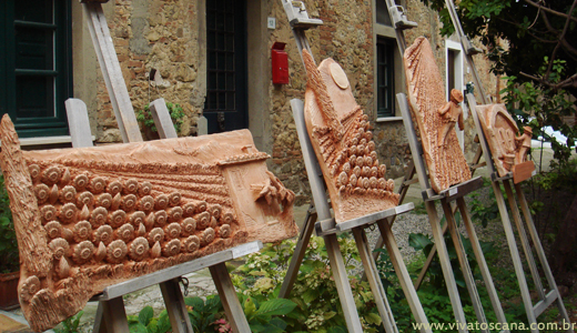 Embora seja uma cidade famosa basicamente pelo vinho que produz nos terrenos que a circundam, Bolgheri nao é só feita de inumeras enotecas uma ao lado da outra. Claro que elas estão presentes em maioria, e não deixe de entrar numa delas para degustar uma taça de um excelente Bolgheri. A sorveteria não poderia faltar, e todos tomam sorvete mesmo no inverno! Ao lado, uma loja de perfumes, óleos e essencias da marca local Acqua di Bolgheri, para comprar aquele presente especial. Um artesão expõe suas obras na frente de seu pequeno atelier. Uma técnica única, obra pela qual me apaixonei!